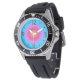 A colourful illuminated design in aqua blue and pink/orange.This clock is manly and sporty,and features a black rubber strap and a protector.Perfect for your partner or son. Note .This is not a led product.