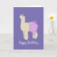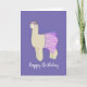 illusima Ballerina Llama dark purple girls Birthday Card designed by Melanie Jensen. This cute girl's birthday card can also be customised to be a girl's Baby Shower Card. The text "Happy Birthday" can be changed to "CONGRATULATIONS".