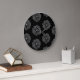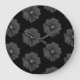 "Illustrated Flower in Black Grey Pattern" Large Clock