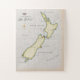 Illustrated map of New Zealand in a beautiful vintage detailed style, decorated with a red bi plane.