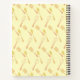 A recipe notebook with a smiling, cartoon, lemon meringue pie with lemon slices on a background of repeating cooking utensils. The cover show the words "Elizabeth's Recipes" and can be customized.