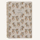 This spiral notebook features an allover illustrated tiger pattern in warm burnt orange, black, and white on a soft stone ground, with scattered leaf shapes woven into the background. A centered label at the top reads "NOTES" with a personalized name underneath in clean lowercase lettering. The gold spiral binding and neutral background keep it feeling polished and pulled-together. A great pick for a teen, a big cat lover, or anyone who wants their desk to look a little more interesting.