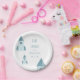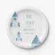 Illustrated White Blue Rocket Ship Baby Shower Paper Plate