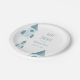 Paper plates for a baby shower with a series of blue rocket spaceships. This item shows blue space rockets with relaxed and airy text. All of the words can be customized.