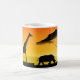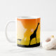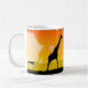 Illustration of an african landscape of fantasy, with a silhouette of a tree,rhino, giraffe and stork