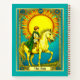 Journal dans une illustration de la carte tarot, "Le Soleil", représentant un soleil radieux dominant le ciel, ses rayons dorés entourant un garçon à cheval blanc. Il symbolise l'innocence et la vitalité, tandis que l'arrière - plan bleu vif rayonne de joie et de clarté.