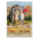 Vintage Trois Petits Chatons - Illustration de Leurs Mittens perdus - De pauvres petits chatons ont perdu leurs mitaines! C'est la plus belle image vintage de trois petits chatons d'un livre pour enfants des années 1800 Les chatons sont dans le jardin, tout comme ils ont compris que leurs mitaines sont parties. Un chaton possède son ventilateur, un autre un parasol, mais pas de mitaine en vue ! Cette rime fait partie de la collection Mother Goose de comptines. Trois petits chatons, ils ont perdu leurs mitaines, et ils ont commencé à pleurer, Oh, ma mère, nous craignons tristement Nos mitaines, nous avons perdu. Tu as perdu tes mitaines, les chatons coquins ! Alors tu n'auras pas de tarte. Mee-ow, mee-ow, mee-ow. Non, tu n'auras pas de tarte. Les trois petits chatons qu'ils ont trouvés leurs mitaines, et ils se sont mis à pleurer, Oh, ma mère chérie, voyez ici, voyez ici, Nos mitaines que nous avons trouvées ! Mets tes mitaines, tes chatons stupides, Et tu auras de la tarte. Purr-r, purr-r, purr-r, Oh, soyons un peu gâtés. Les trois petits chatons enfilèrent leurs mitaines, Et bientôt mangèrent la tarte; Oh, ma mère, nous craignons beaucoup Nos mitaines que nous avons souillées. Quoi ! souillé tes mitaines, les chatons coquins ! Puis ils ont commencé à soupir, Mee-ow, mee-ow, mee-ow. Puis ils ont commencé à soupir. Les trois petits chatons qu'ils ont lavé leurs mitaines, et les ont suspendus à sécher ; Oh ! ma mère, n'entendez-vous pas, Nos mitaines que nous avons lavées ! Quoi! lavé vos mitaines, puis vous êtes de bons chatons, Mais je sens un rat tout près. Mee-ow, mee-ow, mee-ow. Nous sentons un rat à proximité. From Folen, New Nursery Songs for All Good Children (1843)
