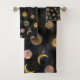 Cette galaxie céleste d'or, l'art esthétique boho univers ajoute une énergie positive à tout événement spécial ou décor spatial. Un design boho en faux or moderne Sun, Lune et planètes nebula, composé par lune croissant d'or, soleil doré éclatant avec les rayons du soleil, planète dorée et bleue Terre, or jaune Saturne et ses anneaux, rose, or rose et or jaune Vénus, Jupiter et Mars peint à la main planète sur un gris foncé, noir et blanc de l'espace nébule avec des étoiles brillantes.