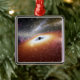 Illustration of a supermassive black hole at the core of a young, star-rich galaxy featured with accretion discs.