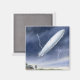 Illustration of US Navy airship being struck by lightning during storm as man looks up from ground next to car. Copyright: Peter Dennis