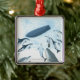 Illustration of dolphins looking up at a boat metal ornament