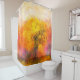 Illustration soft colourful autumn forest. Abstract fall season, yellow and red leaf on tree, outdoor landscape. Nature painting pastel design with watercolor paint. Modern art