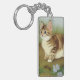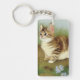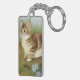 Porte - clé avec une illustration vintage de chaton. Un chaton tabby mignon caché dans un jardin fleuri. Un cadeau parfait pour les amoureux de les chats et les collectionneurs d'art victorien.