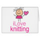 Darling stick figure girl in pink with I Love Knitting slogan. Cute gift for knitting club members.