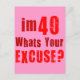 I'm 40, whats your excuse? Birthday Postcard