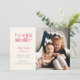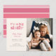 Celebrate your new little one and their proud big sister with this single photo birth announcement. It features the words "I'm a big sister" in shades of pink along with space for all of the info about your new arrival on the left and space for a single photo on the right. The back has a colour coordinating pink stripe pattern.