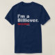 "I'm a Billiever" on a classic navy blue tee shirt.