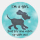 A picture of an adorable black dog running, with the caption, "I'm a girl. Just try and catch up with me!" This is an original picture by A Woof And A Wag Designs. A special thanks to Pattern8 for the wonderful background pattern.
