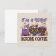 Cast a spell on your morning with this enchanting greeting card featuring the phrase “I'm A Witch Before Coffee.” Adorned with cute Halloween-themed coffee brews, like jack-o’-lantern cups, ghost lattes, and witchy mugs, this whimsical design is perfect for anyone whose magic doesn’t kick in until after their first sip. A fun and festive tribute to spooky season and caffeine cravings!