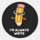 I'm Always Write Funny Pencil Pun Dark BG Classic Round Sticker