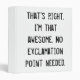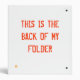 The front says, "That's right I'm that awesome. No exclamation point needed." and the back says, "This is the back of my folder." All letters are in caps. The outside of the folder is white and the inside is black.