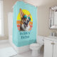 Get ready to add a touch of humour to your bathroom decor with our "I'm Bath To The Bone Funny Corgi with Sunglasses" shower curtain! Featuring an adorable corgi sporting stylish sunglasses, this curtain is sure to bring a smile to your face every time you step into the shower. The retro-inspired circle background in a calming light teal colour is the perfect complement to the playful pup, and the customizable text "I'm Bath To The Bone" is a fun twist on the classic "bad to the bone" phrase