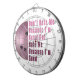 The personalized dart board will be perfect for my daughter's game room in their new house! It was packaged well and arrived with no damage. It is rather sturdy. Because of the weight, I am going to recommend they use an anchor bolt to secure it or nail into a stud behind the drywall. The printing turned out exactly like I saw it on the preview.