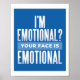 This funny blue and white 'I'm emotional? Your face is emotional' quote gift is perfect for man, woman or teen boy or girl who has something to say back to those who think they're a tiny bid 'emotional'. Thought provoking and discussion starter! Add your own text to personalize this somewhat sarcastic themed gift.