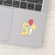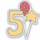 NewParkLane - Cute Kids 5th Birthday custom-cut vinyl stickers; featuring a big number five in yellow with a red an yellow polkadotted balloon and a yellow star shaped balloon, against a red background. Add your own text for a personalized design.