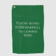 Golfers will love this funny golf towel! Quote text is "You're being FOREwarned, I'm gonna win!" in white on a green towel, but you can change the colours with Zazzle's customize feature if you'd like.
