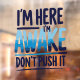 i'm Here I'm Awake Don't Push It Shirt gamer Window Cling