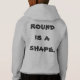 Nice, grey sweatshirt with dark grey writing caption: Im in shape... round is a shape.