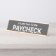 Be honest with this funny name plate that reads, "I'm just here for the paycheck."