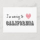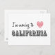 "I'm Moving To California" fun, retro graphic. Vintage postcard styling.