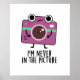 I'm Never In The Picture Funny Camera Pun features a cute camera. Perfect pun gift for family and friends who love cute camera puns.