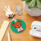 compact and adorable green keychain featuring a sad brown robot dog in a humourous situation. The metallic, futuristic dog is shown sitting with a forlorn expression, holding a tiny sign that says, 'I'm not a robot,' as it struggles with a CAPTCHA prompt from a website