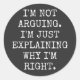 I'm Not Arguing I'm Just Explaining Why I'm Right. Classic Round Sticker