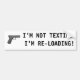 I'M NOT TEXTING I'M RE-LOADING! BUMPER STICKER