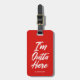 Come and go in style with this funny script written luggage tag. It features the words "I'm Outta Here" in a unique white script style font overtop a scarlet red backdrop. Underneath the text is an optional spot for yours or your gift recipient's name or initials.