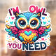 Send across smiles with this cute colourful owl illustration with the text:"I'M OWL YOU NEED"