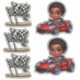 This adorable African-American toddler is ready to win the big race in his red sports car.