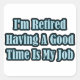 Cute, funny saying quote text design in blue and black that features the humourous retirement saying, I'm Retired, Having A Good Time Is My Job.