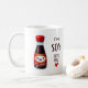 A cute and playful design featuring a smiling soy sauce bottle with the pun "I'm Soy Into You." Perfect for a mug to enjoy your favourite beverages. Ideal for sending a sweet and quirky message to someone special or as a unique gift.