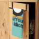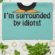 I'm surrounded by idiots! Funny and sarcastic insult with a black and white penguin with orange feet and beak graphic with a turquoise blue/green background cyan colour. Fully customizable.