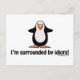 I'm surrounded by idiots! Funny and sarcastic insult with a penguin image on our many different style and coloured T-Shirts & products.