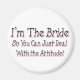 I'm the Bride, So You Can Deal With the Attitude This unique pink and black design is a great Gift for Brides. A perfect Bridal Shower gift. If you know a Bride with Attitude, this funny bride saying would make a perfect present for her! This Cute Saying for Brides is sure to put a smile on the face of the special lady that understands Bride Humour.
