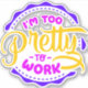 I'm Too Pretty to Work Sticker is the ultimate way to showcase your sassy and playful personality! This high-quality and durable sticker features a sleek and stylish design with the sarcastic and humourous quote "I'm Too Pretty to Work" emblazoned across it. Perfect for adding a touch of fun and personality to your laptop, water bottle, or notebook, this sticker is sure to make a statement wherever you go. Use it as a lighthearted way to poke fun at yourself or as a playful reminder that sometimes, it's important to not take life too seriously. Get yours today and add a touch of humour to your everyday life!