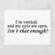 I'm Vertical And My Eyes Are Open. Isn't That Enough? Does it seem that people are being too demanding when not only want you to be awake, but they want you to actually do something? See all our musical designs on on cups, mugs, tee shirts, sweatshirts, hats, and other gifts and clothing.