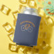 This foam can cooler makes a great retirement gift for cyclists and anyone who loves to ride bikes. It has a slate blue background and features the funny message "I'm Wheely Enjoying Retirement" in orange above an illustration of a matching orange bicycle.