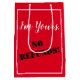 Let that special someone know how you feel about them with this whimsical message. This red gift bag has a pink border and the words, "I'm Yours, NO REFUNDS!"